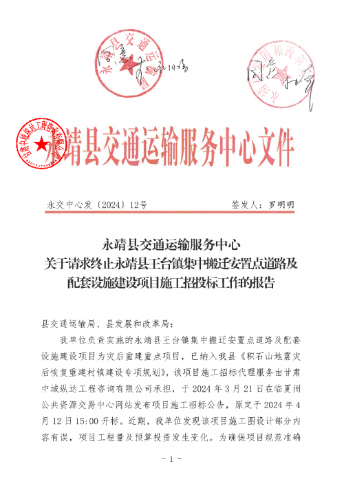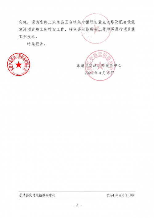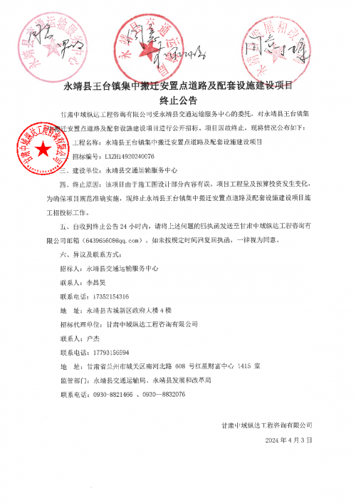 永靖县王台镇集中搬迁安置点道路及配套设施建设项目终止公告