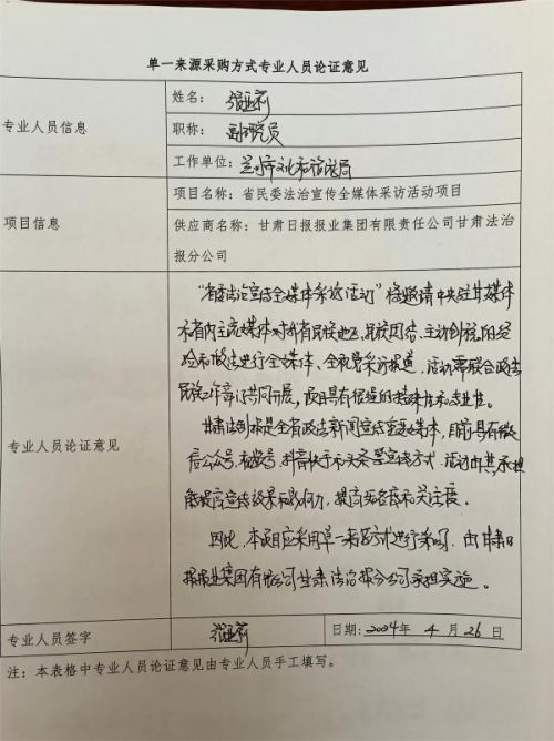 供应商名称:甘肃日报报业集团有限责任公司甘肃法治报分公司