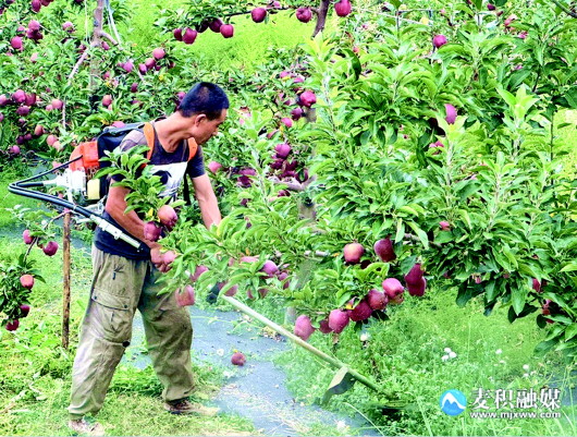 近日,麦积区中滩镇漆李村迎来了丰收的喜讯——佑达农业的花牛苹果已进入成熟期,预计9月10日上市。佑达果园面积超过300亩,今年预计产量可达百万斤。随着上市日期的临近,工人们正紧锣密鼓地进行采摘前的除草、枝条修剪等各项准备,力求每颗苹果都能以最佳状态上市。王玮瑕 魏碧雲 摄