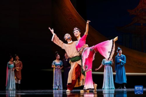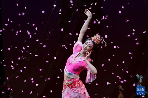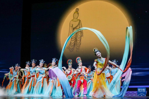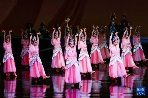 9月20日晚,演员在敦煌大剧院表演新版《丝路花雨》。 新华社记者 郎兵兵 摄