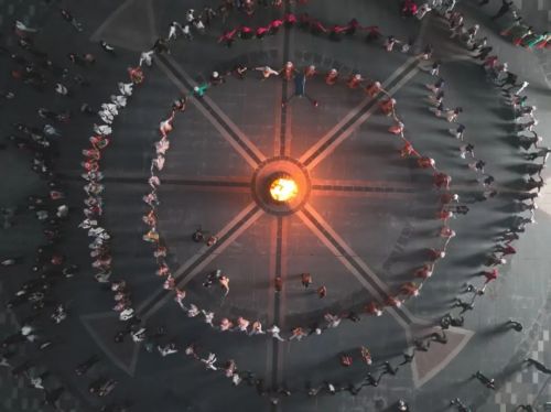 夜幕降临,喧嚣的气氛由“稻田”移师至“舞台”。在白马盛典演艺中心广场之上,干部与民众共同演绎国家级非物质文化遗产《池哥昼》,手挽手欢快地跳起火圈舞。两千余名当地居民与演员们互动,欢声笑语在夜幕中荡漾,将庆祝丰收的喜悦推向了巅峰。