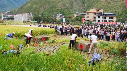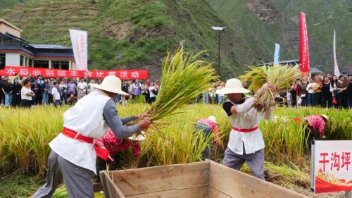 下午3时,热闹氛围在陇南文县城关镇刘家咀村的稻田里率先点燃,活动启动。紧接着,水稻收割比赛正式打响,自下午四时起,村民与政府工作人员齐心协力,共同弯腰劳作于稻田之中。在金色的稻浪中,镰刀起舞,欢声笑语交织,使得丰收的喜悦在辛勤的汗水中愈发鲜明而深刻。