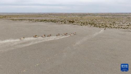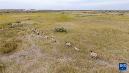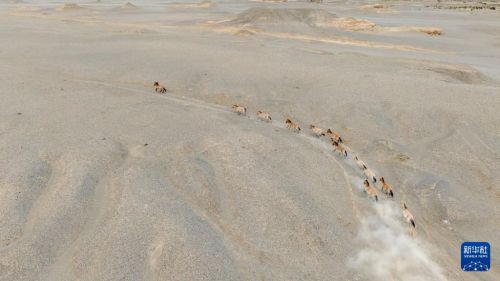 这是9月24日在甘肃敦煌西湖国家级自然保护区内拍摄的普氏野马(无人机照片)。