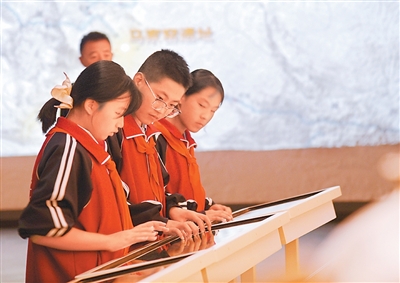 日前,第八届马家窑文化节在甘肃省定西市临洮县开幕,主题研学、文物展览、彩陶文化体验等多项活动纷纷亮相。图为在马家窑文化研究展示中心,当地中学生通过数字化平台了解马家窑文化。