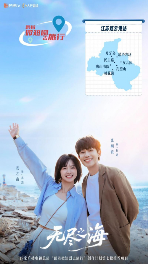 近日,国家广播电视总局在第二届长江文化艺术季“视听长江”网络传播周启动仪式上发布了“跟着微短剧去旅行”创作计划第七批推荐剧目,共94部。连云港市海州区首部精品短剧《无尽之海》成功入选。