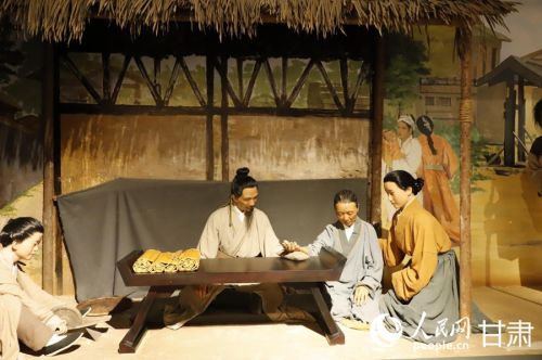 展馆内皇甫谧治病救人的蜡像复原场景。人民网记者 焦隆摄
