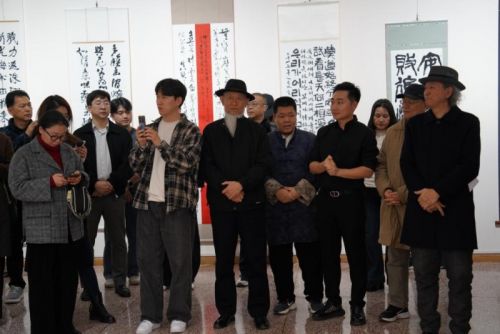 韩国驻华文化院金辰坤院长;《中国书法全集》主编、国际书法家协会主席刘正成先生;中国国家画院研究员、国际书法家协会理事邵岩先生;中国国家画院研究员、青少年书法报社副社长李强先生;中国国家画院研究员、成都画院学术委员会主任委员文永生先生;中国艺术研究院水墨画院创作研修班导师、当代艺术家王清州先生;中国通俗文艺研究会秘书长李楠女士;在中韩人美术协会长金镛宇先生;苏州市书画研究会理事、苏州市吴中区美术家协会理事曹江萍女士;四川省教育基金会主任张维怡先生;民建中央画院院士、清华大学人文学院专项课题研究员怀馥先生;在中韩人美术协会朴建孩女士;当代篆刻家精品艺术丛书《中国陶瓷印》主编李成军先生;中国通俗文艺研究会副秘书长徐平贵先生;韩国大使馆书记官赵显仙女士。气氛热烈。