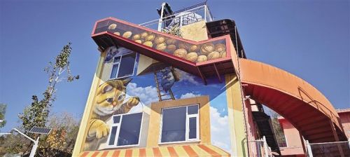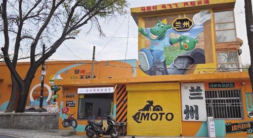 墙绘的视觉表达尤为引人注目,“0931号”蒸汽火车墙绘缓缓亮起,车头泛出暖光,串联起瓜果、土拨鼠等Q版风物元素,宛如一列承载城市记忆的“文化专列”,驶过人们的乡愁,也打开游客了解兰州的窗口。另一处“牦牛烫头”墙绘则以幽默创意出圈:拟人化的牦牛坐在理发椅上,身旁剪刀、水壶环绕,头顶卷发蓬松,憨态可掬的形象引得路人频频驻足拍照,笑声不断。