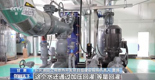 长庆油田公用地热开发项目组建设现场负责人 曹博:从地下把热水取出来以后,经过循环,给居民用户端供完热后,水还通过加压回灌、等量回灌。在这个过程中,水只跟地下的资源换热、取热,不损害地下的水资源。
