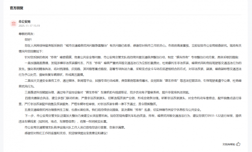 收到网友留言后,兰州市政府高度重视,立即安排兰州市公安局核查办理。兰州市公安局交管支队回复称,已制定专项整治方案并持续开展交通秩序整治,具体措施如下: