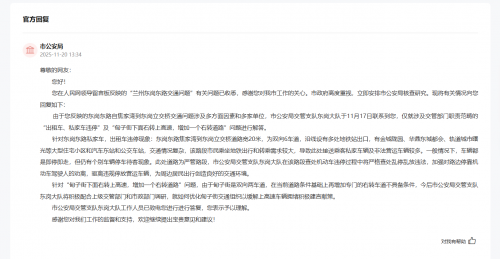 收到留言后,兰州市公安局交管支队东岗大队对相关问题进行了核查与回应。