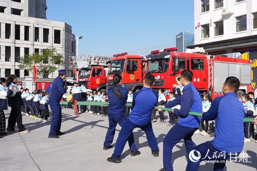 在拔河比赛现场,加油声、欢笑声不断。消防指战员们扎稳马步,却微笑着把控力度;孩子们小脸通红,紧握绳索齐声呐喊。这场温情满满的比赛,迅速拉近了“火焰蓝”与“萌娃”的距离。