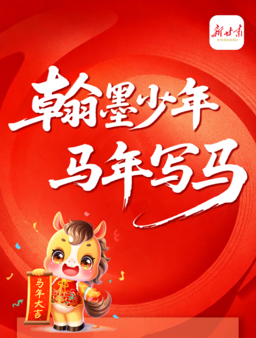 转眼即将迎来2026农历丙午马年。在这辞旧迎新的欢庆时刻,为传承千年文脉,播撒墨香祝福,展现当代少年意气风发、昂扬向上的精神风采,甘肃新媒体集团携手甘肃省书法家协会,策划推出“翰墨少年·马年写马”新春书法网络祝福活动!