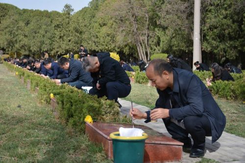 兰州市烈士陵园安葬着918名在兰州战役中牺牲的烈士,其中474位烈士没有留下名字。阳光下,人们轻轻擦拭墓碑,细心为墓碑描红,敬献鲜花。以最朴素的方式,缅怀为解放兰州英勇献身的无名烈士。(记者 多蕾)